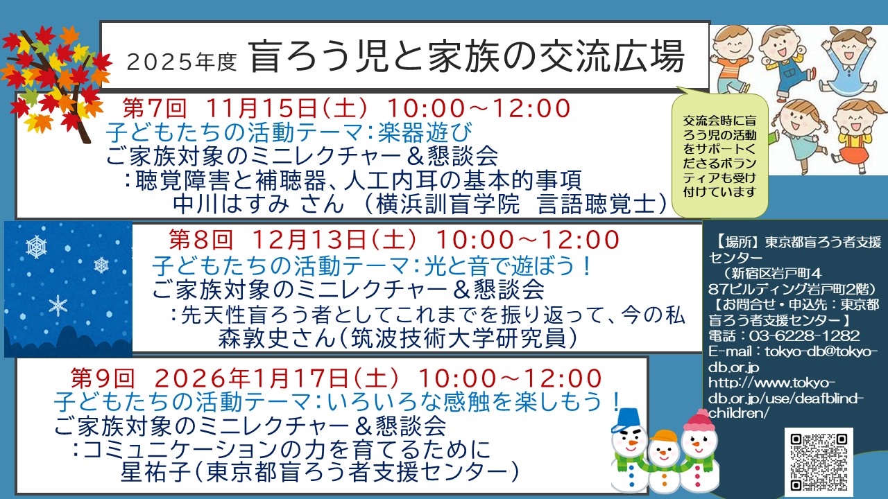 「盲ろう児と家族の交流広場」を毎月開催します(原則として、毎月第3土曜日)。